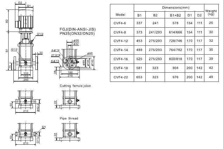 Αντλία κάθετη πολυβάθμια CVF 4-6T