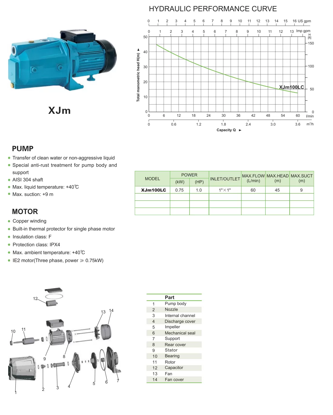 Αντλία αυτομάτου αναρροφήσεως XJm 100LC