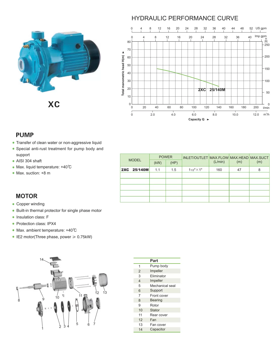 Φυγοκεντρική αντλία κατάλληλη για διακίνηση καθαρού νερού, οικιακής παροχής. Ιδανική για πότισμα κήπων και για πιεστικά συγκροτήματα.