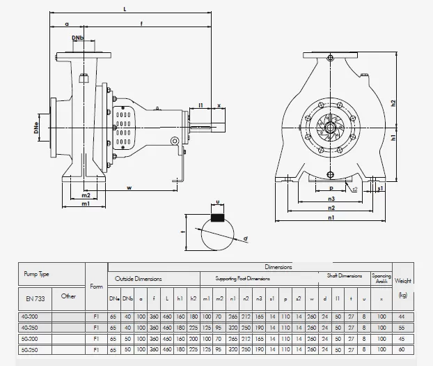 Οι διαστάσεις της αντλίας είναι σύμφωνα με το πρότυπο EN 733 - DIN 24255.