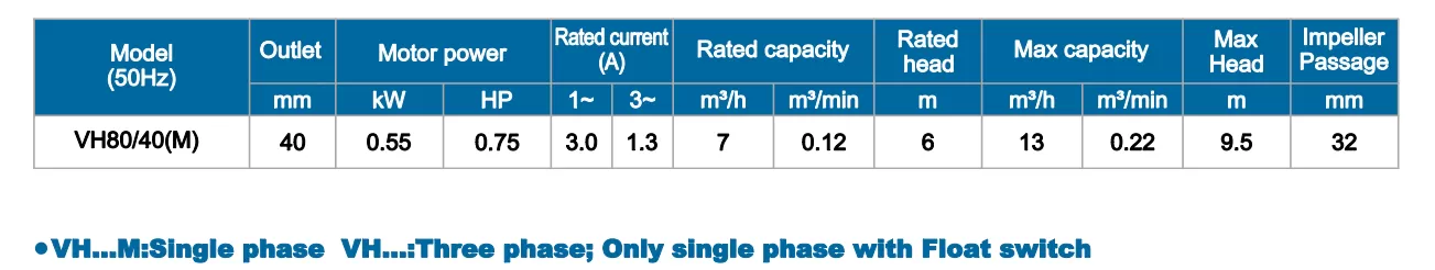 Αντλία Λυμάτων τύπου 40VH 0.75 2MF