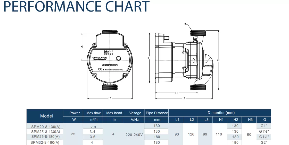 • ESTFLOW SPM 32-8-180A/E Καλύπτει: WILO RS 30/6, GRUNDFOS UPS 32-60