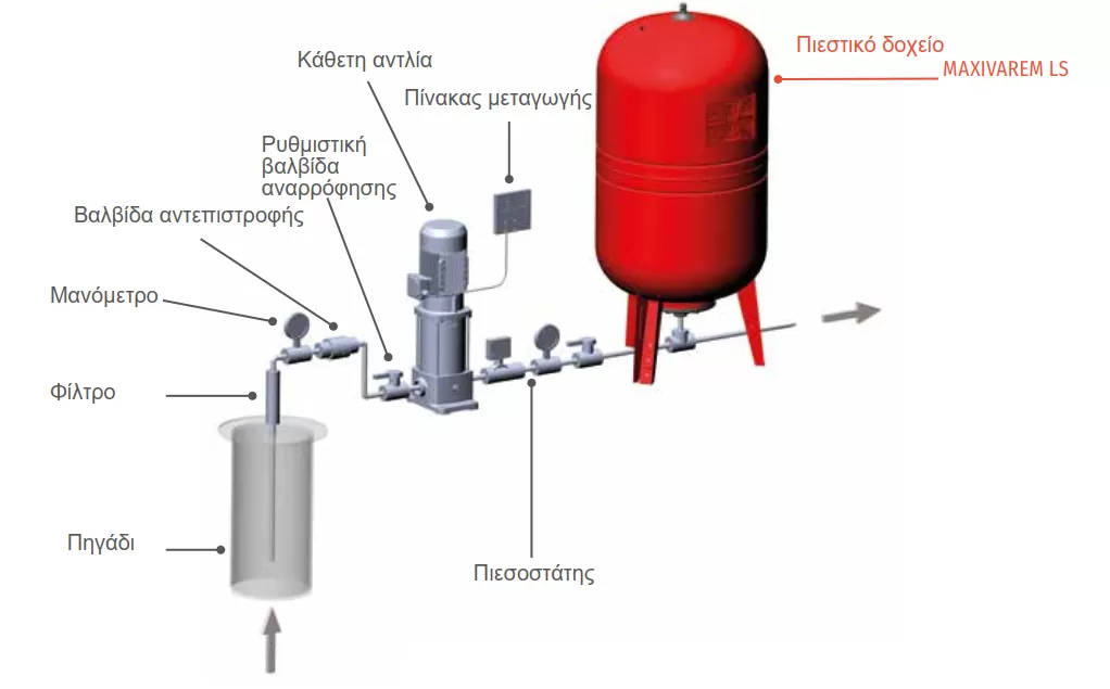 Πιεστικά δοχεία VAREM LS με εναλλάξιμη μεμβράνη, κατάλληλα για πόσιμο νερό.
