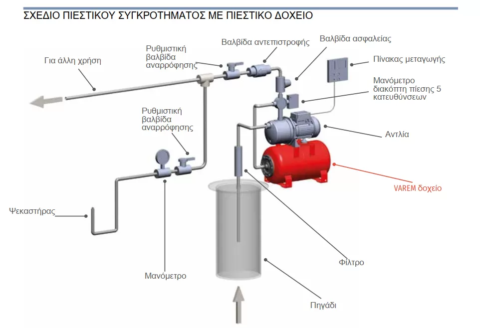Πιεστικά δοχεία VAREM LS με εναλλάξιμη μεμβράνη, κατάλληλα για πόσιμο νερό.