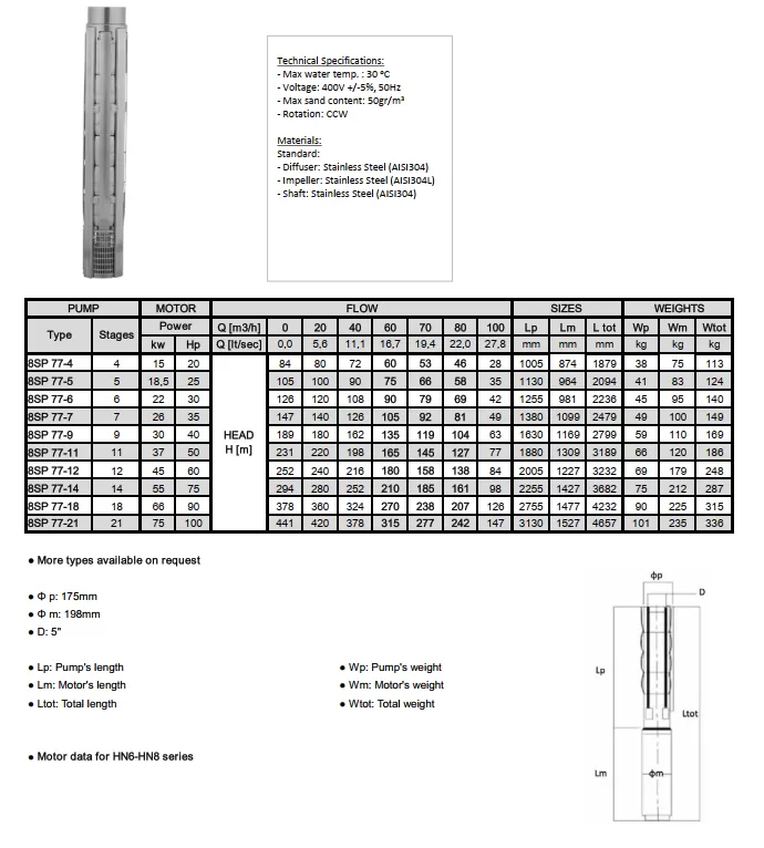 Ανοξείδωτη υποβρύχια αντλία γεωτρήσεως 8" 8SP 77-7