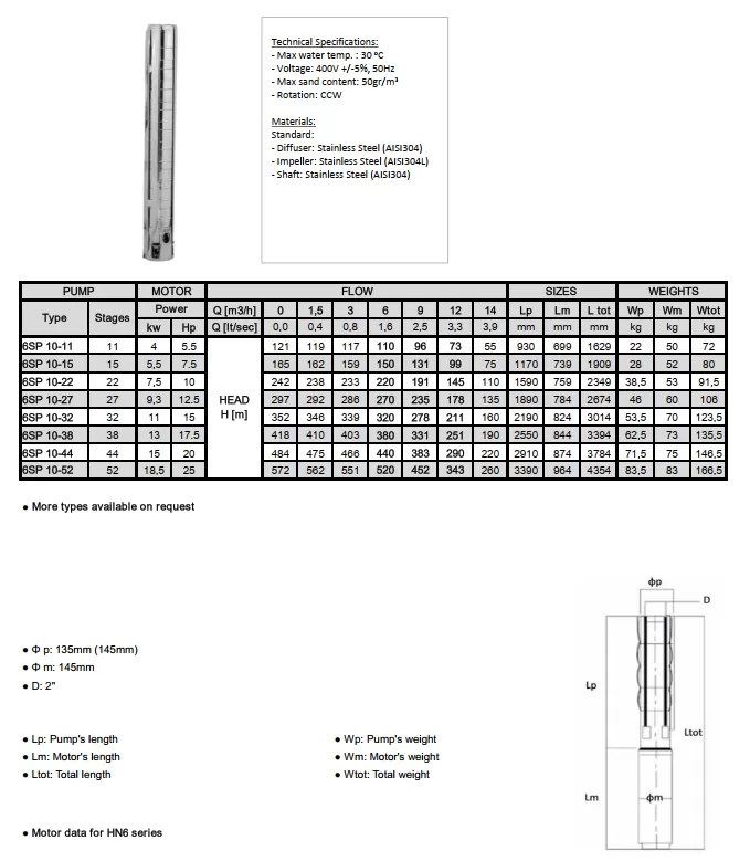 Ανοξείδωτη υποβρύχια αντλία γεωτρήσεως 6" 6SP 10-32