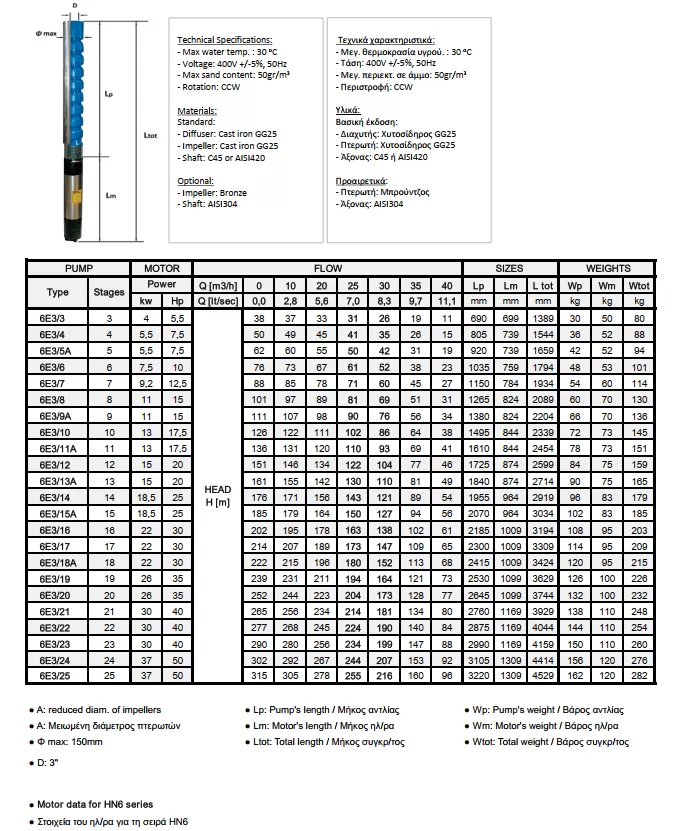 Υποβρύχιες αντλίες κατάλληλες για άντληση καθαρού κρύου νερού. Εφαρμογές σε βιομηχανία, πιεστικά συστήματα, ύδρευση, άρδευση, πυρόσβεση κτλ.