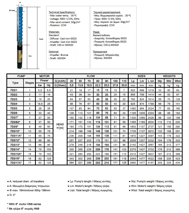 Υποβρύχιες αντλίες κατάλληλες για άντληση καθαρού κρύου νερού. Εφαρμογές σε βιομηχανία, πιεστικά συστήματα, ύδρευση, άρδευση, πυρόσβεση κτλ.